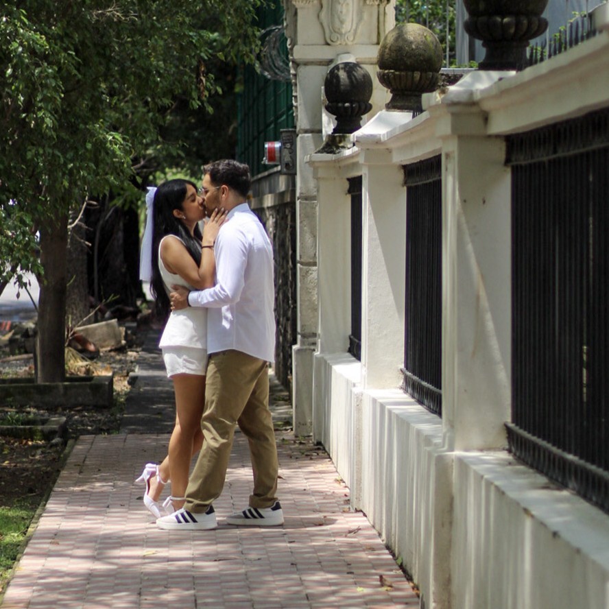 Usar tenis blancos es una opción cool y cómoda en esta ocasión especial.