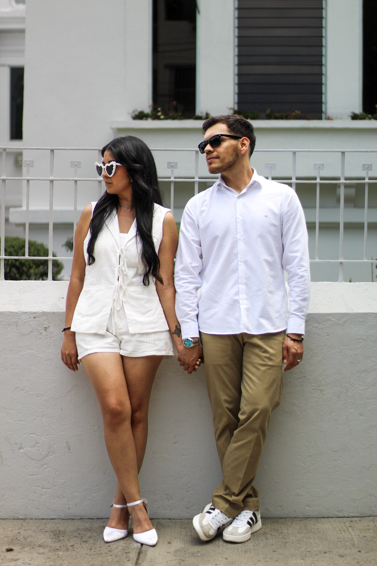 Usar tenis blancos es una opción cool y cómoda en esta ocasión especial.